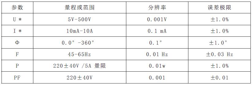 注:5 V - 1 0 V、5 m A - 1 0 m A測(cè)相位時(shí),誤差范圍在±3 . 0°以內(nèi)